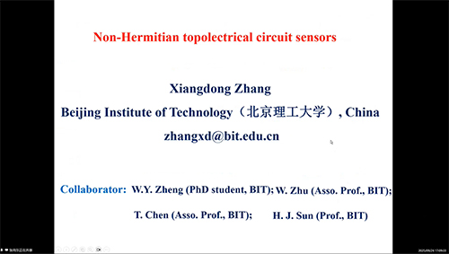 Xiangdong Zhang, Distinguished Professor from Beijing Institute of Technology, China, delivered a keynote speech on Non-Hermitian topolectrical circuit sensors.
