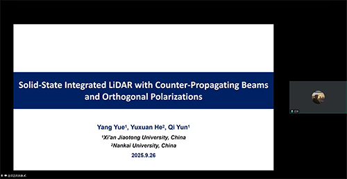 Yang Yue, Professor from Xi'an Jiaotong University, China, delivered a keynote speech on Solid-State Integrated LiDAR with Counter-Propagating Beams and Orthogonal Polarizations.